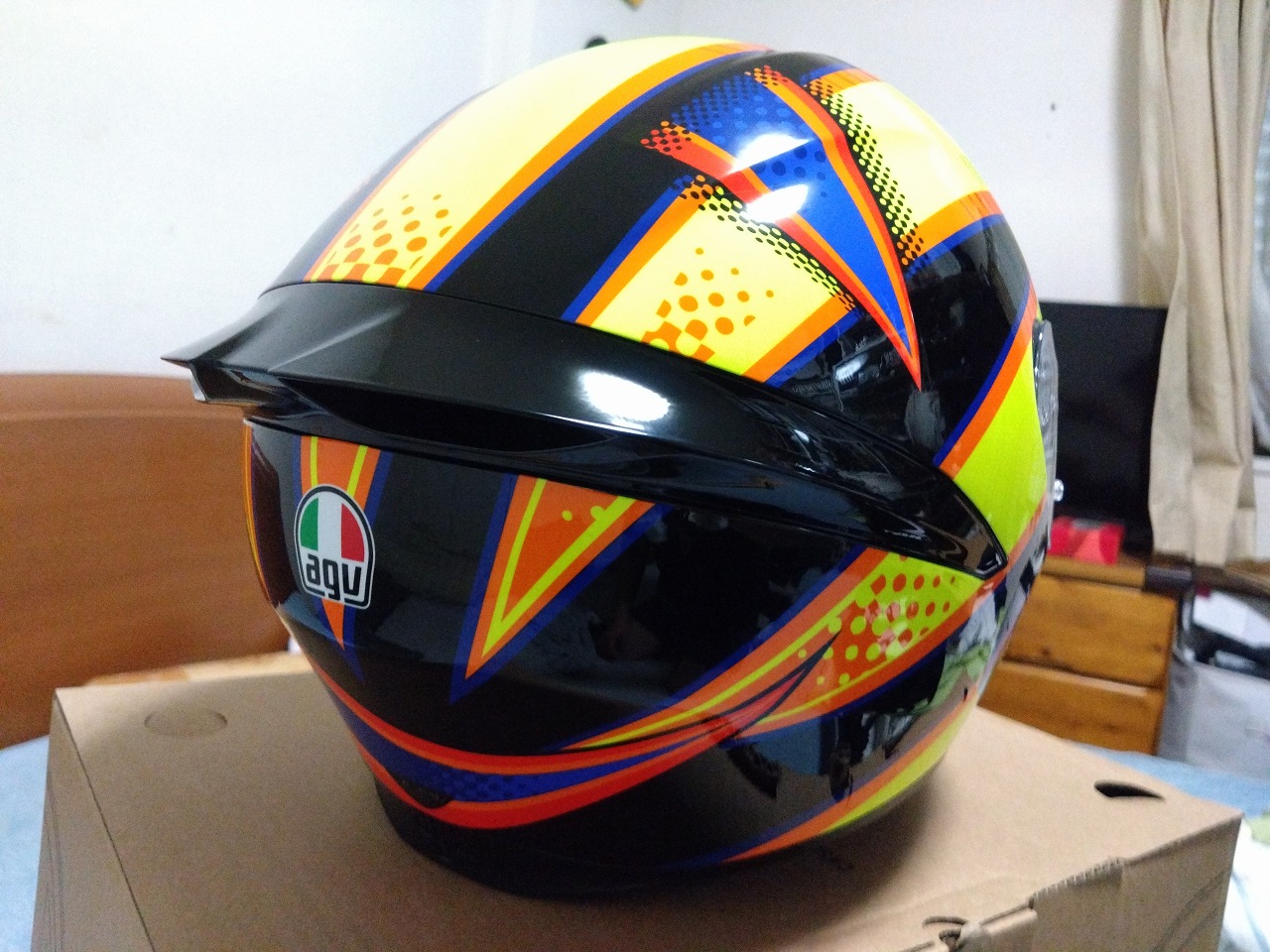 ロッシレプリカの黄色を基調としたド派手なモデルでAGには合わないのですがアジアンフィットのXLを購入です。