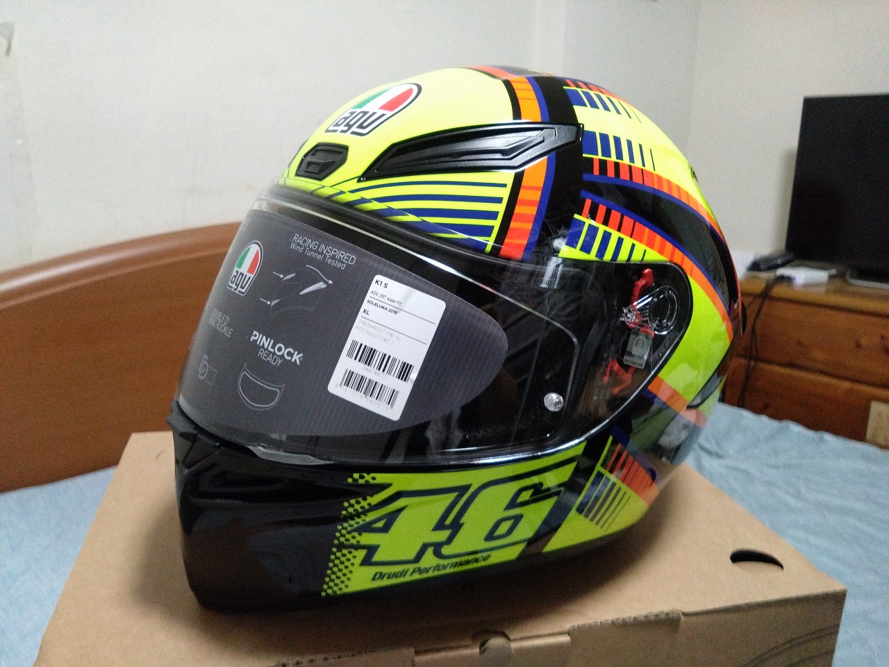 ロッシレプリカの黄色を基調としたド派手なモデルでAGには合わないのですがアジアンフィットのXLを購入です。