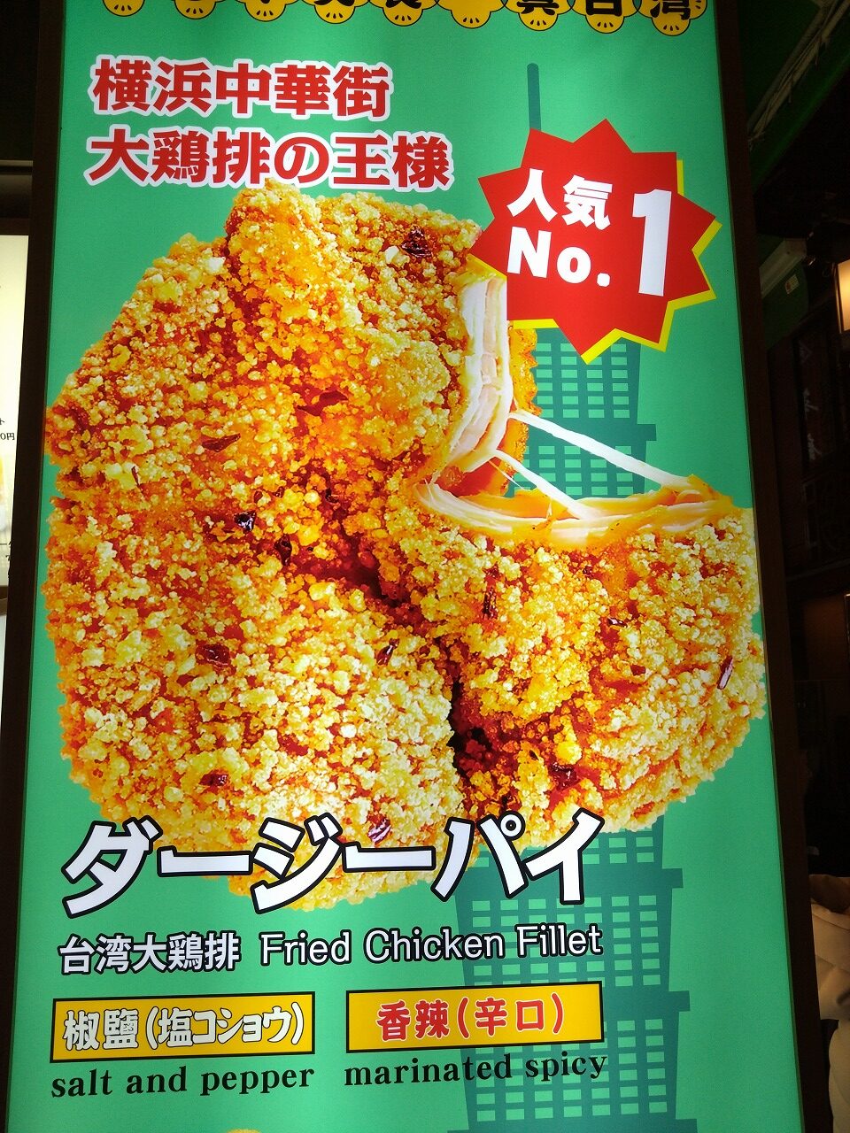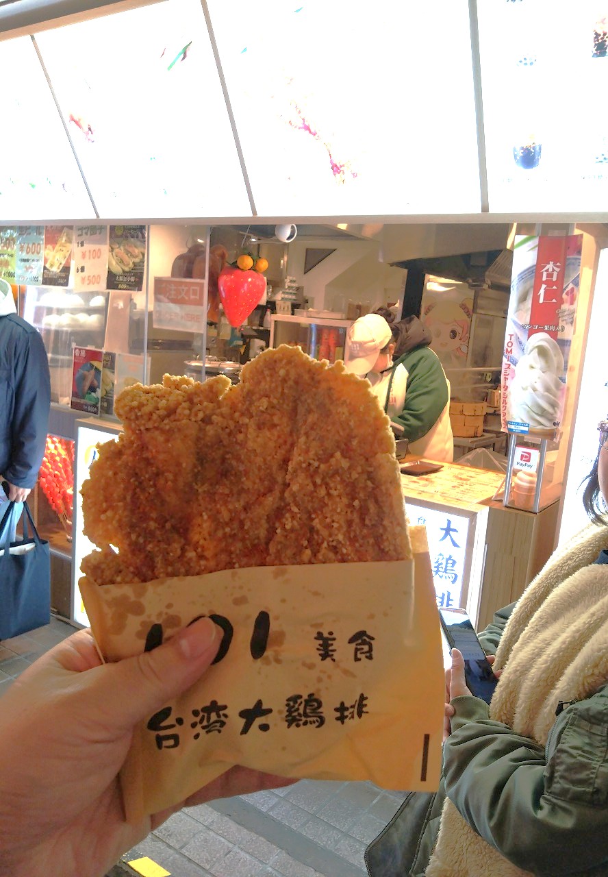 途中で大鶏排(ダージーパイ / 大雞排)辛口を食べつつプリン屋に向かう。