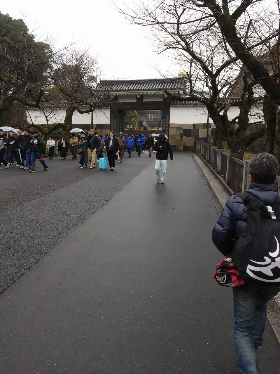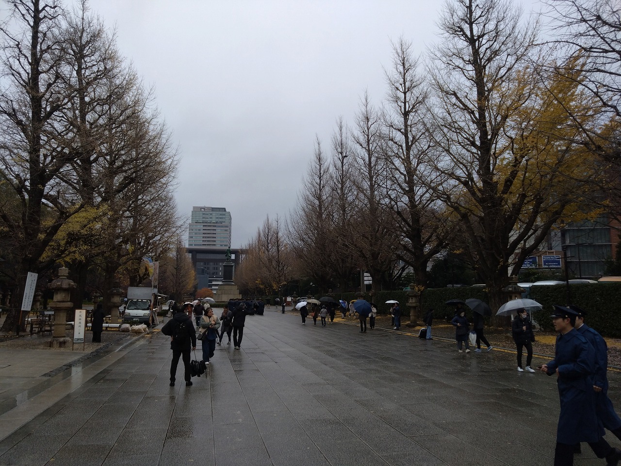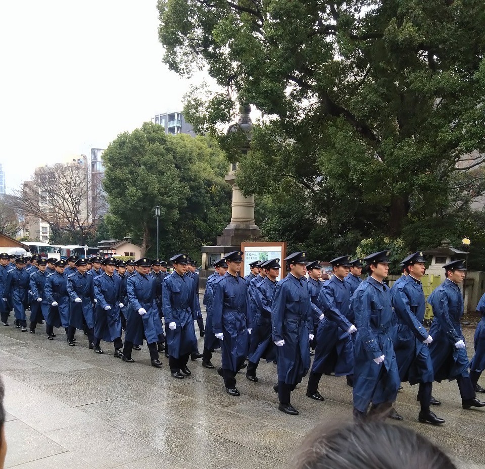 昨日からの雨がしとしと降っており通り沿いのカフェで休憩していたら、防衛大学の生徒さんが制服姿で参拝していました。