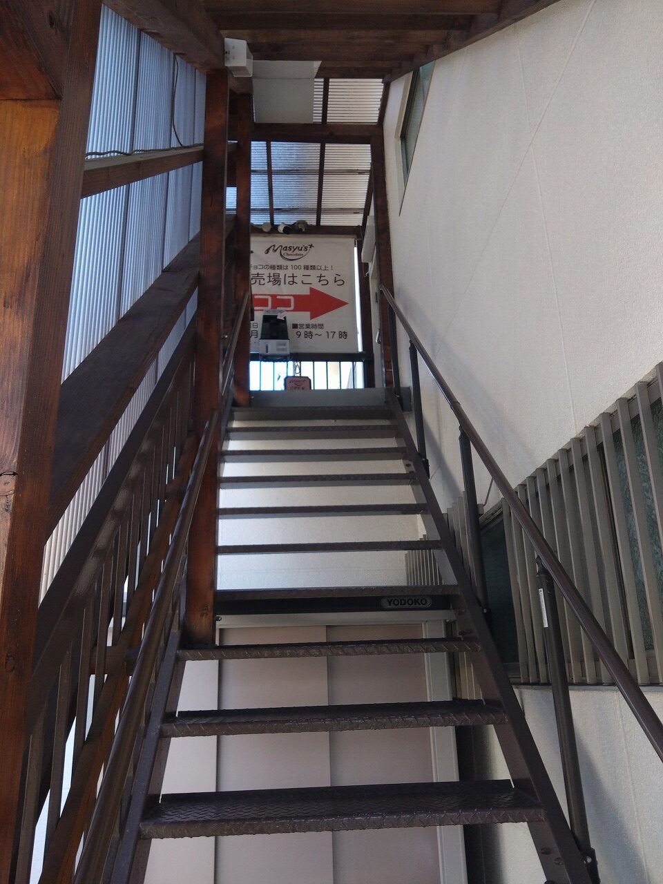 階段を上がって直売所に入るとまぁ狭い(;´Д`A ```