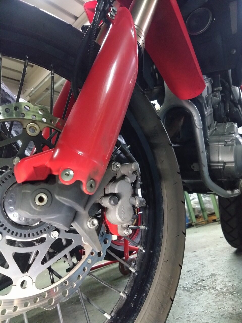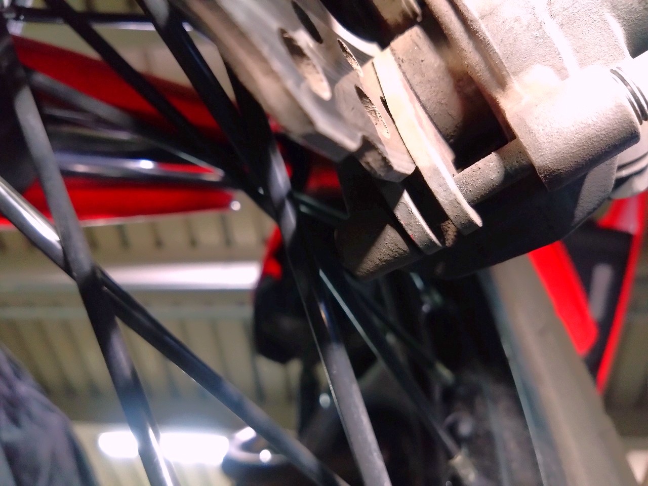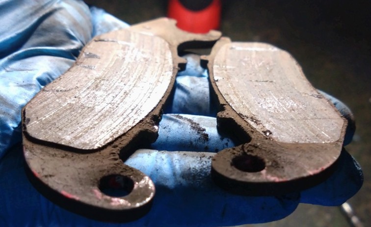 交換時期を延ばし延ばしにしていたフロントブレーキパッドを確認