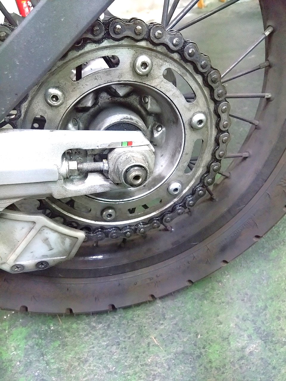 ササっと洗浄してからグリスアップして、だるだるチェーンをアジャストしてみました。
