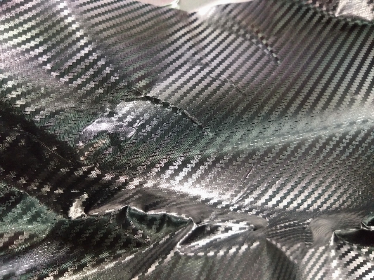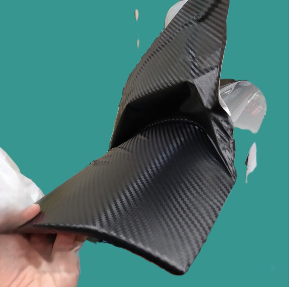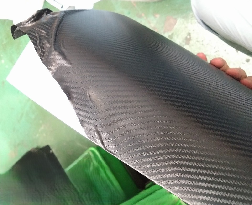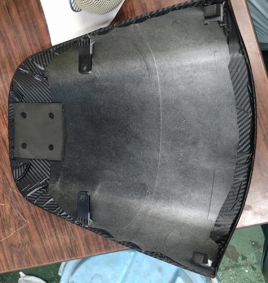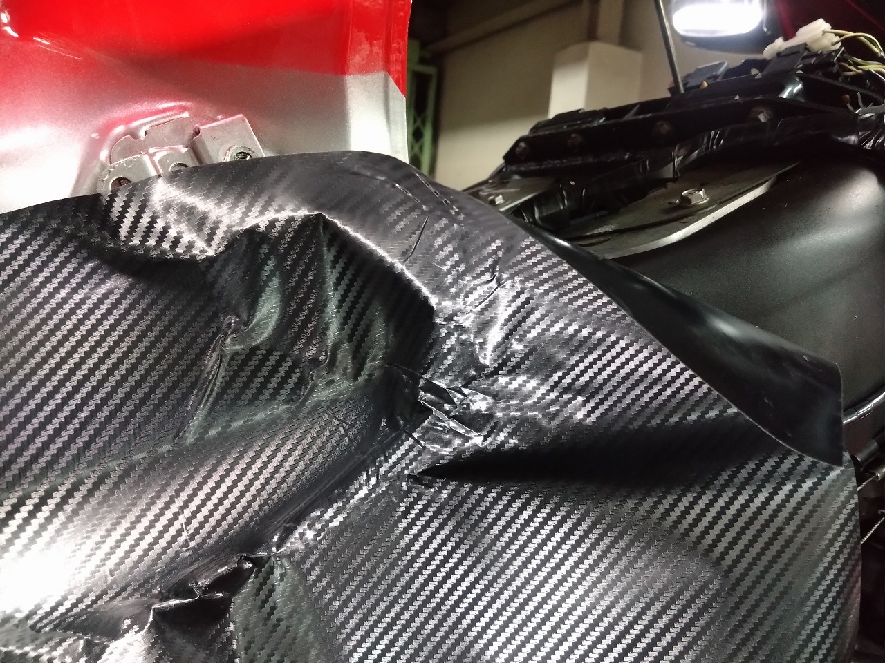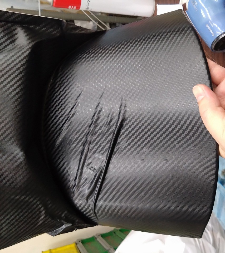 サイドのカーボン柄が白浮きしてえげつない伸び方してますがこのバッタもんシートは破れずに貼れました!