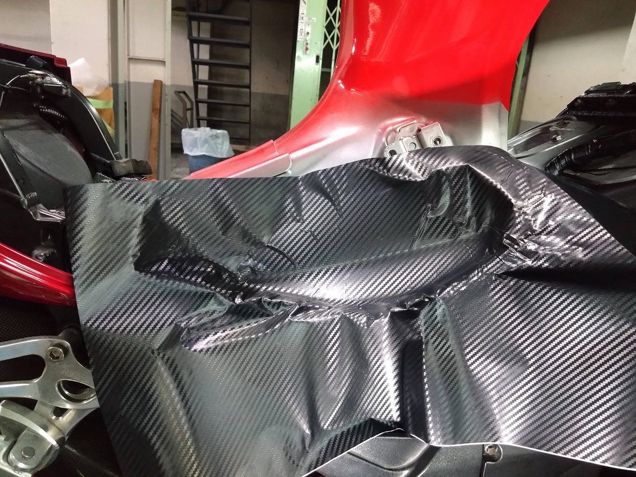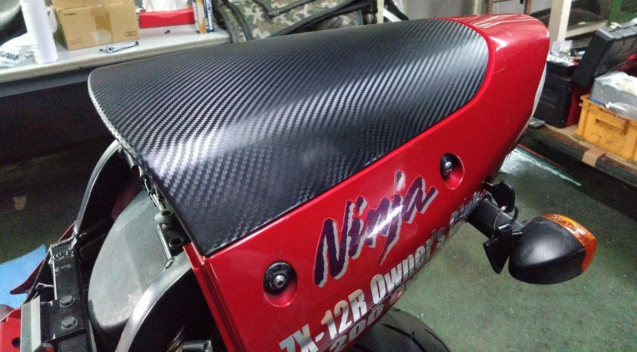 ZX-12R ラッピングシートの貼付け シングルシートカバー お色直しその3