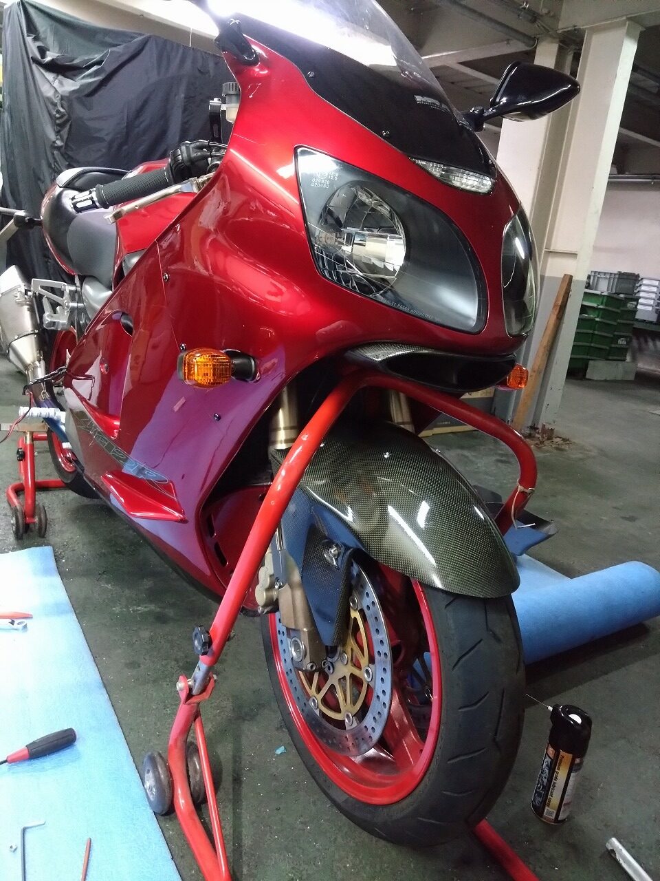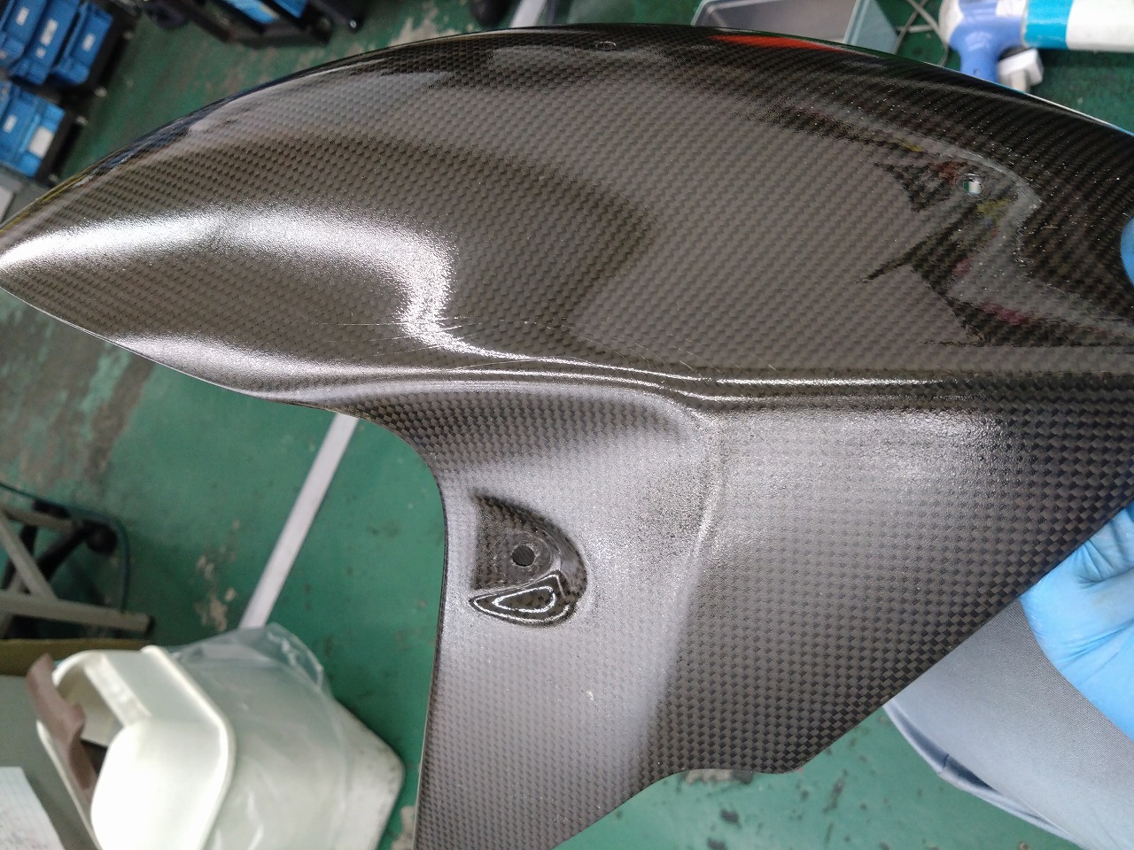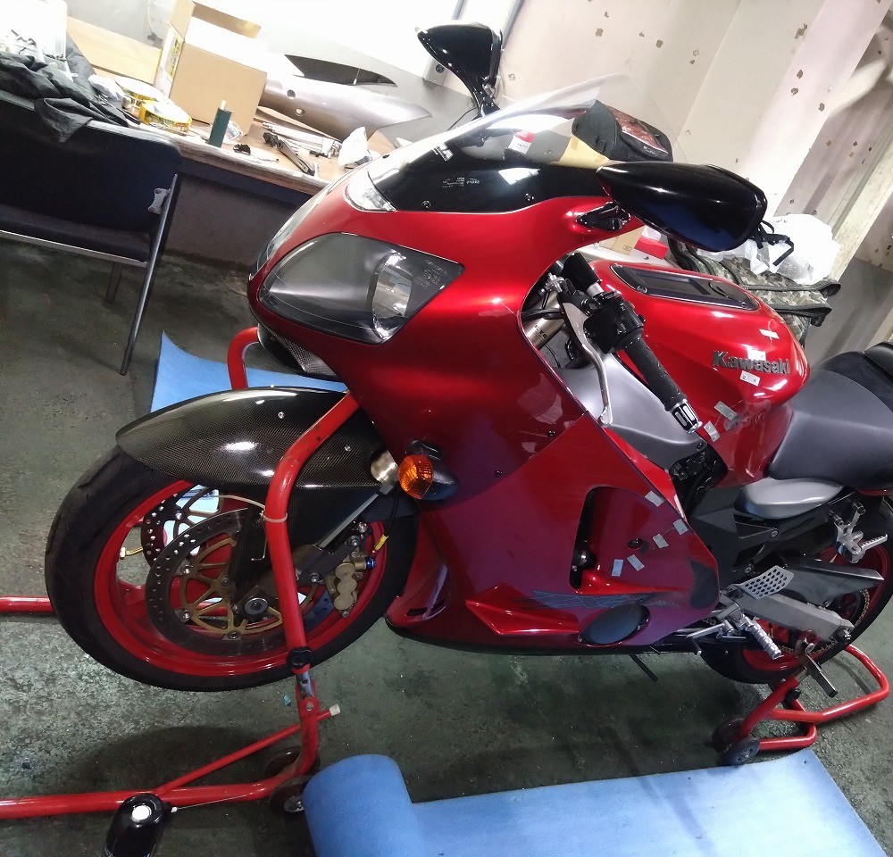 ZX-12R カーボンフロントフェンダーのクリア塗装&取付け お色直しその2