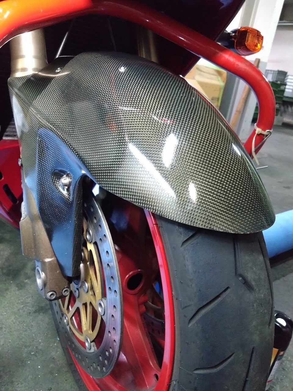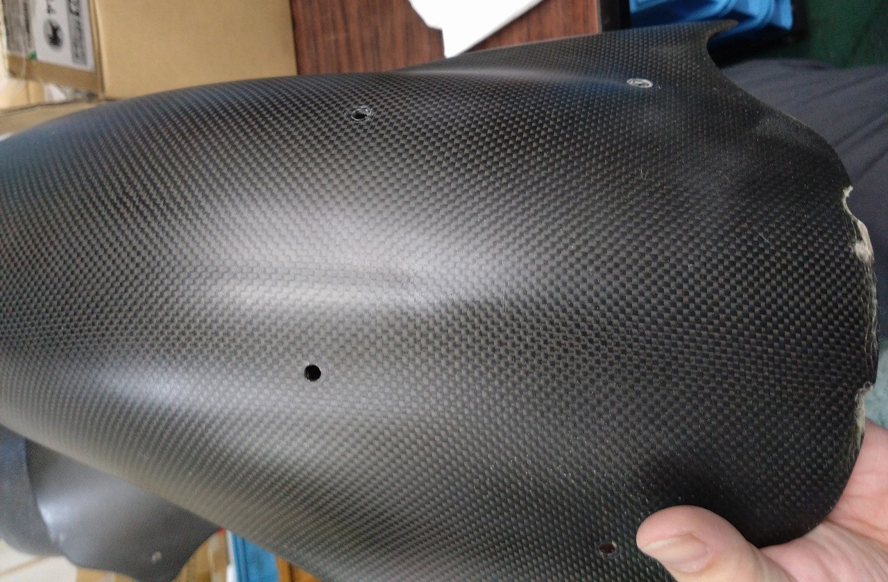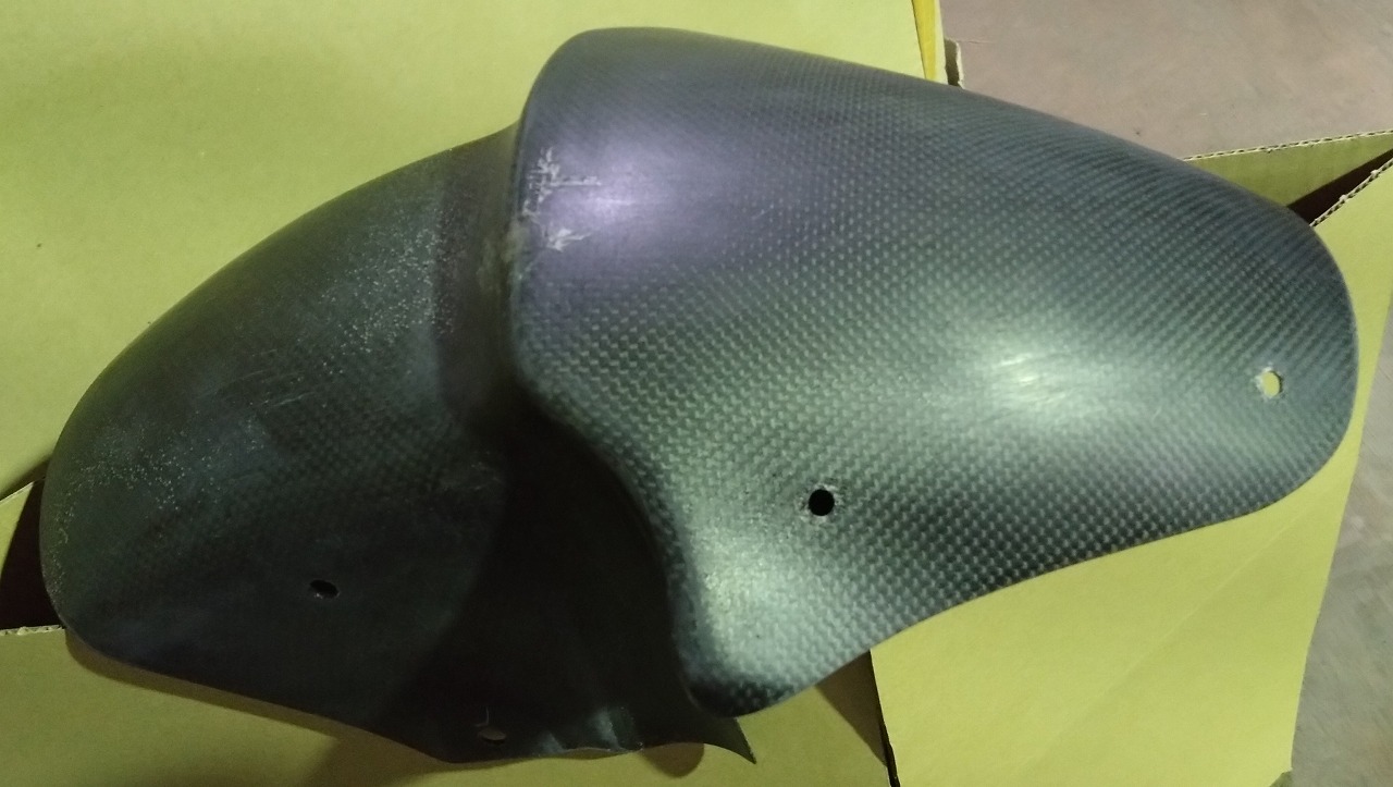 ②1098用カーボンフロントフェンダー(割れた足だけダメ元塗装)