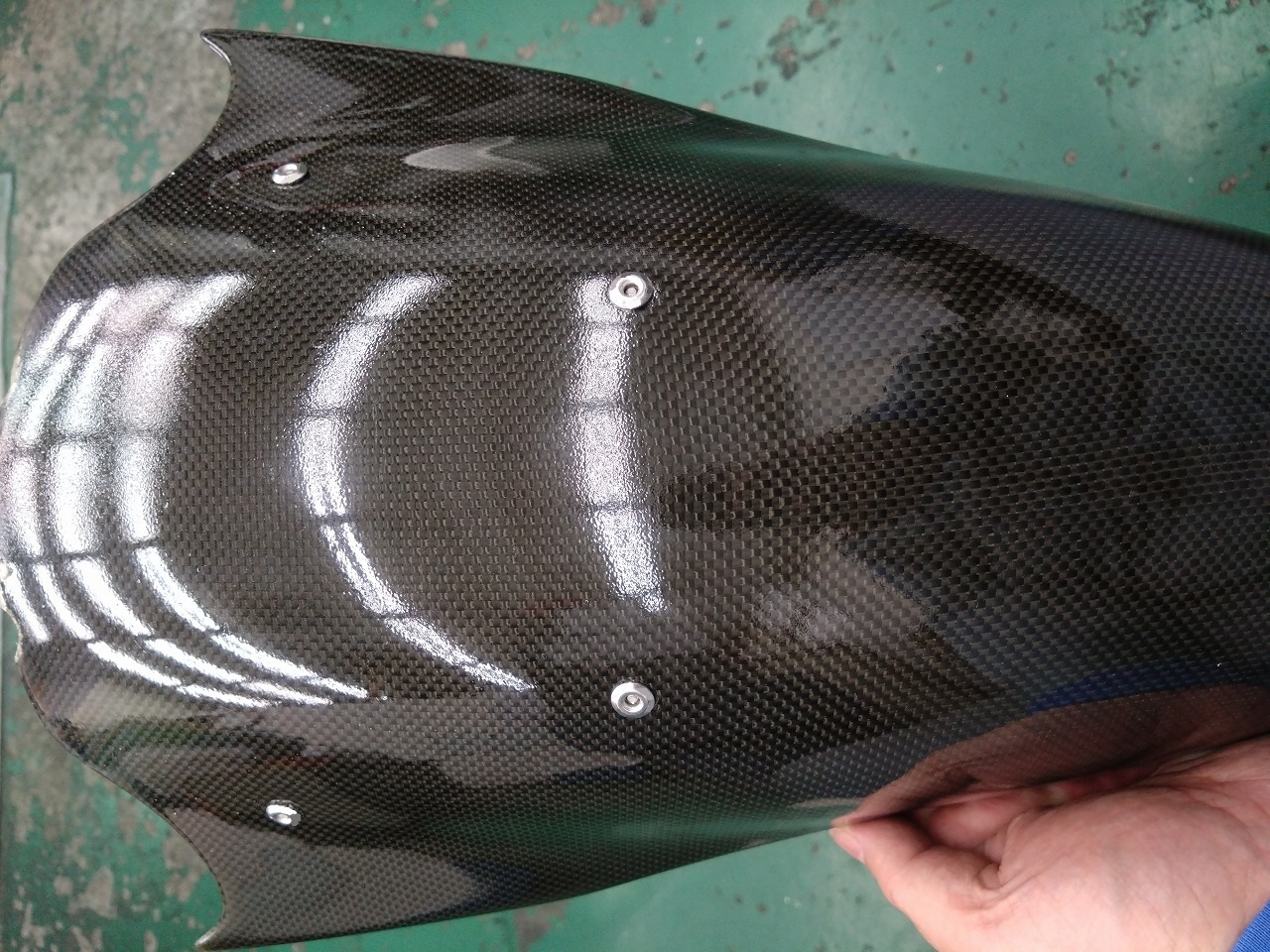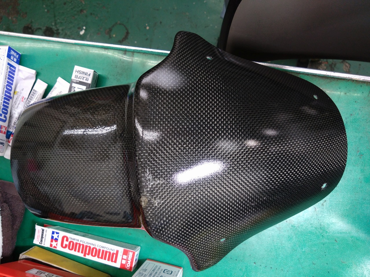 ③1098用カーボンリアフェンダー①(ショックタンクあたりキズ部分塗装)