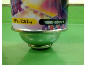 金属ピンを押し込んだ後は、すぐに缶を逆さにして5分から10分放置し、反応が進むのを待つ。